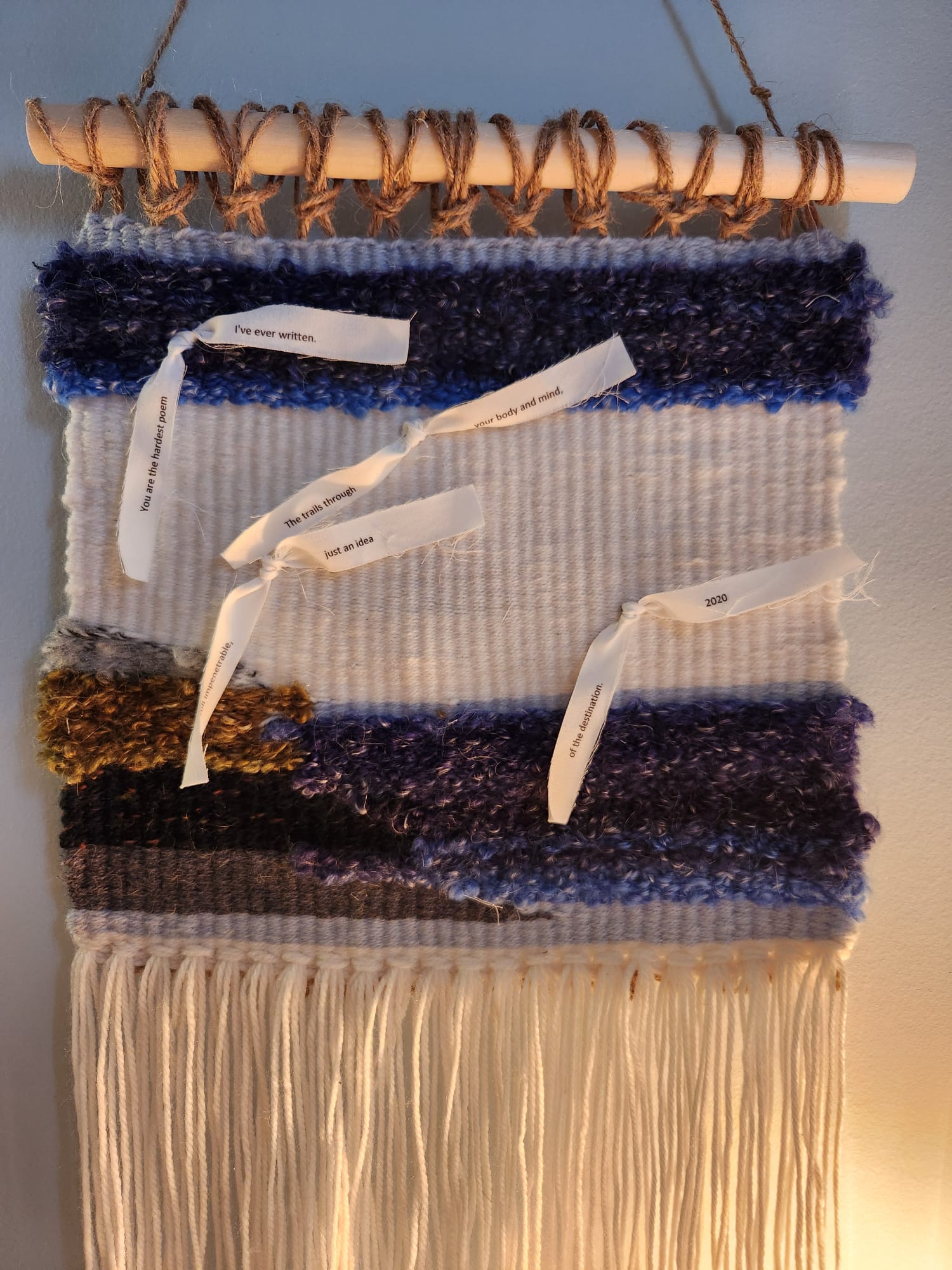 All wall hangings are unique. The poetry added to each weaving is the original work of the artist (NB).